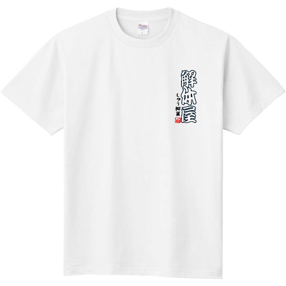 解体屋しゅうオリジナルTシャツ -習字『解』×しゅう興業ロゴ-